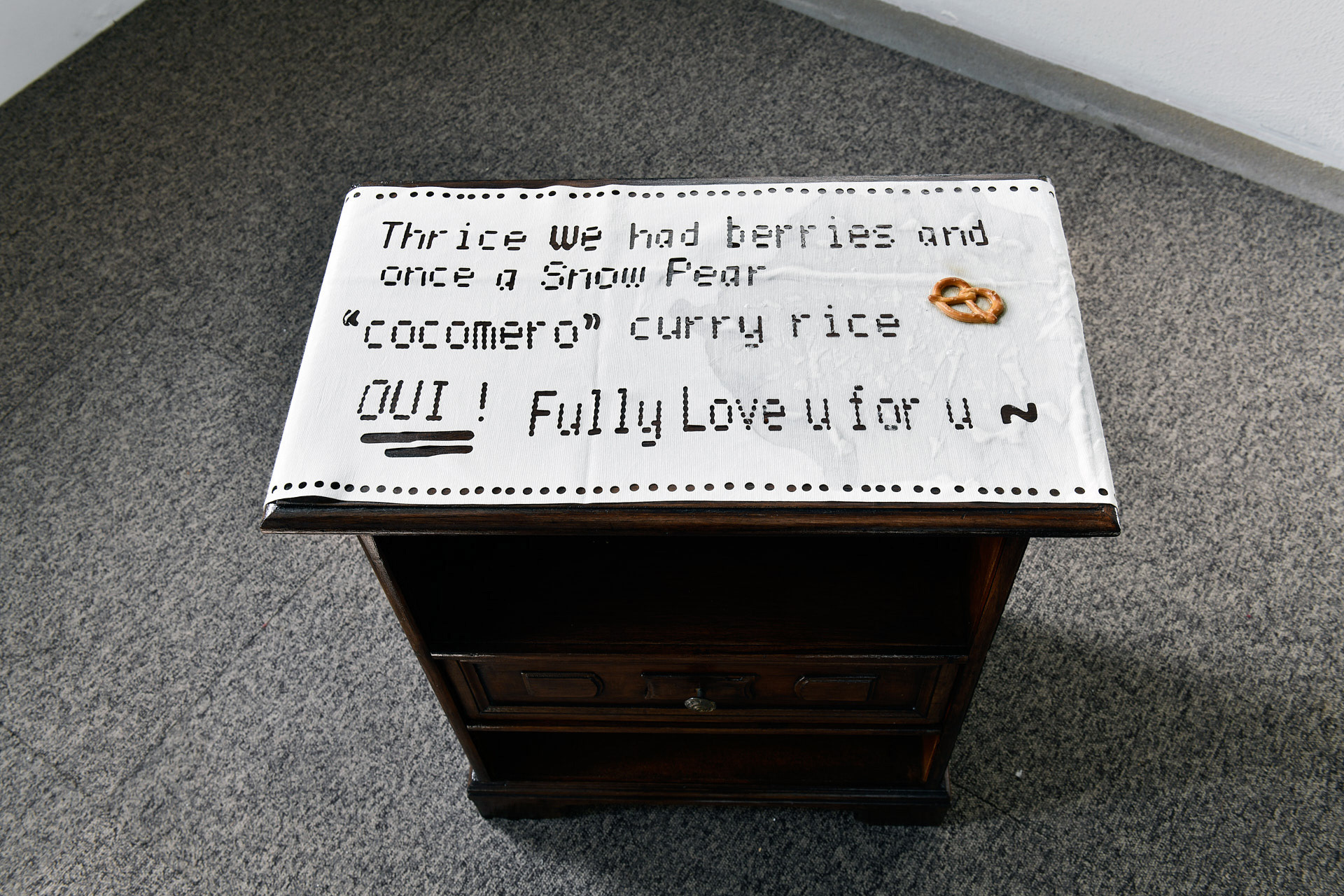 [...] Ça serait un faux vernissage avec de la vraie bouffe, des vraies artistes, des vraies oeuvres, et un vrai public. Un vernissage ou personne n’a a se justifier, ou on est touste ensemble dans la même merde. Avec Agathe de Limoges, Oélia Gouret, Niels Hung, Xheneta Imeri, Ettore Meschi, Erika Nieva Cunha, Alexandra Sheherazade Salem